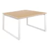 Bàn nhân viên đơn. Mặt bàn MFC dày 25mm. Chân bàn sắt ống tam giác 60x60x84 hình chữ O, sơn tĩnh điện màu trắng.