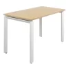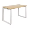Bàn nhân viên đơn kèm hộc. Mặt bàn MFC dày 25mm. Chân bàn sắt ống tam giác 60x60x83 hình chữ U, sơn tĩnh điện màu trắng.Hộc thân gỗ mặt ngăn kéo sắt.