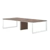 Bàn họp 1.8m. Mặt bàn MFC dày 25mm. Chân bàn sắt ống tam giác 60x60x82 hình chữ O, sơn tĩnh điện màu trắng.