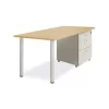 Bàn chân trụ có 1 hộc liền 4 ngăn kéo, mặt gỗ MFC. Không có giằng.