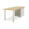 Bàn lệch trái chân trụ có 1 hộc liền 3 ngăn kéo, mặt gỗ MFC, Không có giằng.