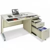 Bàn sắt 1 hộc liền, mặt bàn Laminate màu ghi /vân gỗ (không khay), chân và yếm hộc bằng sắt