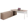 Bàn lãnh đạo mặt gỗ MFC dày25, chân ống ô van, yếm sắt sơn tĩnh điện màu trắng (không bao gồm tủ phụ).