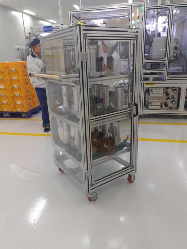 Bàn thao tác và kệ lắp ráp được kết nối với nhau bằng các khớp nối kim loại hoặc khớp nhựa; tháo lắp dễ dàng, vận chuyển thuận tiện, có thể tháo rời để di chuyển.