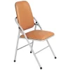 Ghế gấp có mặt bàn gỗ, khung sơn/mạ/inox, mặt ngồi và tựa bọc da PVC.
