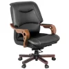 Ghế bọc da ốp gỗ veneer, lưng trung, chân sao mạ.