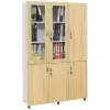 Tủ cánh gỗ MFC. Khung, đợt bằng sắt sơn tĩnh điện mầu trắng. Khoang kính có 2 đợt, khoang cánh gỗ có 1 đợt.